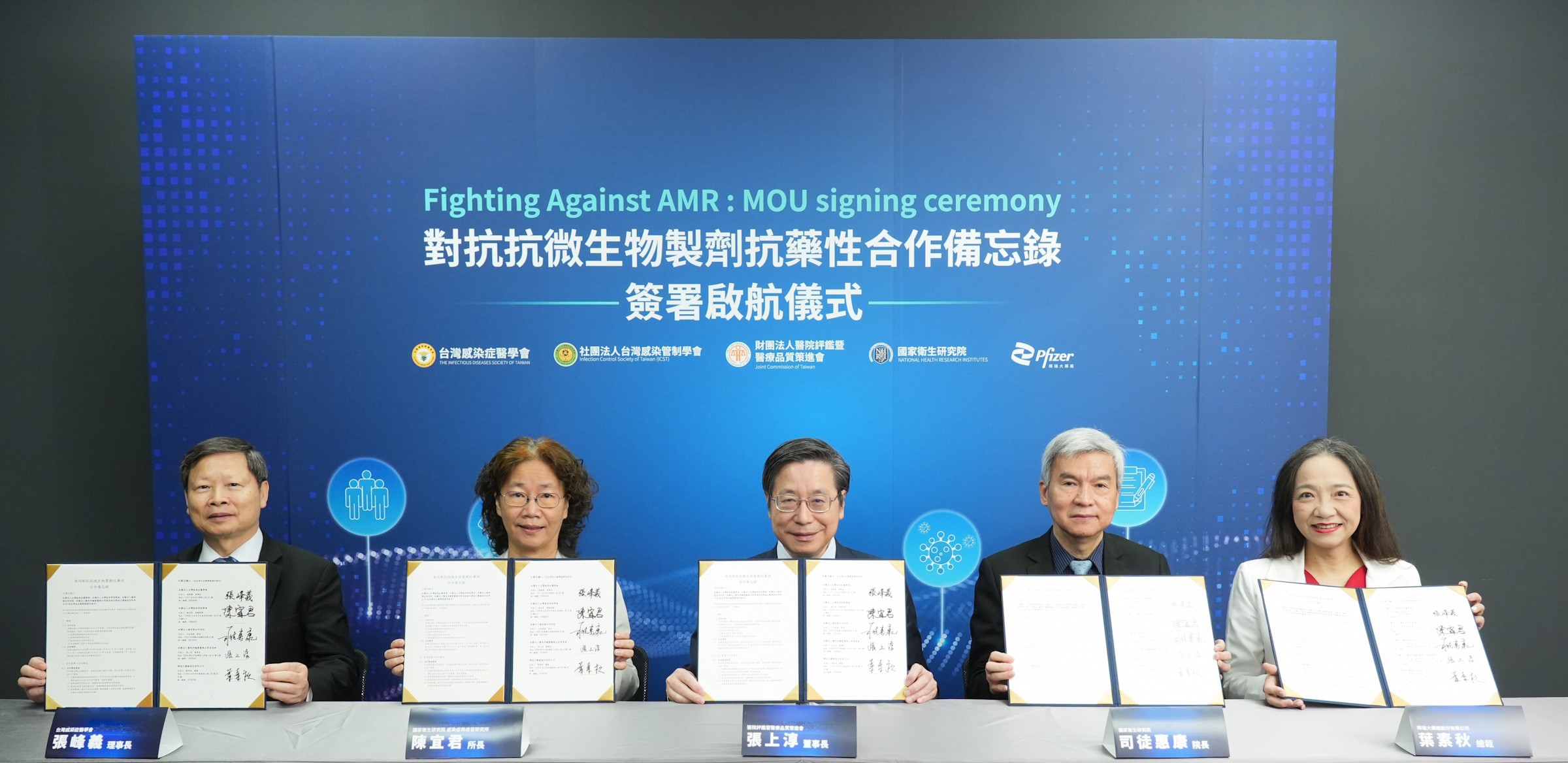 台灣輝瑞公司今日宣布與社團法人台灣感染症醫學會、社團法人台灣感染管制學會、財團法人國家衛生研究院、財團法人醫院評鑑暨醫療品質策進會(依各單位名稱筆劃順序排列)共同簽署「共同對抗抗微生物製劑抗藥性合作備忘錄(MOU)」,本次協議以跨界整合為核心,匯聚產業端資源、臨床醫學專業、科研量能及醫療品質管理機制,促成跨國與跨院監測數據聯網、優化臨床感染診療與用藥流程,並擴展至社會大眾抗藥與感染預防認知教育,建立長期、緊密且具國際對話能力的合作防治架構。
